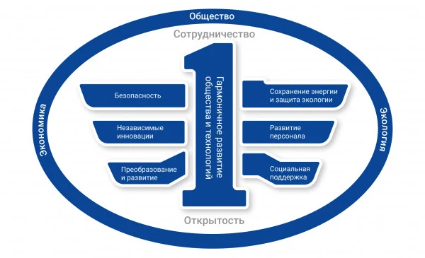 Корпорация придерживается принципов гармоничного развития, включая взаимодействие человека, транспортного средства и общества. Поэтому FAW не только занимается производством высококачественных автомобилей, но также уделяет значительное внимание развитию корпоративной культуры.